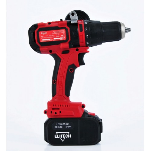 Аккумуляторная дрель-шуруповерт ELITECH ДА 18УБЛ2 (Е2201.002.02) с бесщеточным двигателем для установки крепежа, сверления отверстий в минеральных строительных материалах, в черных и цветных металлах, дереве и производных материалов на его основе (фанера, ДСП, OSB, МДФ и подобные), а также различных видов пластика. Примером использования является проведение отделочных и строительных работ, установка легкого оборудования, сборка мебели, монтаж кухонь, использование в мастерской и в домашнем хозяйстве.