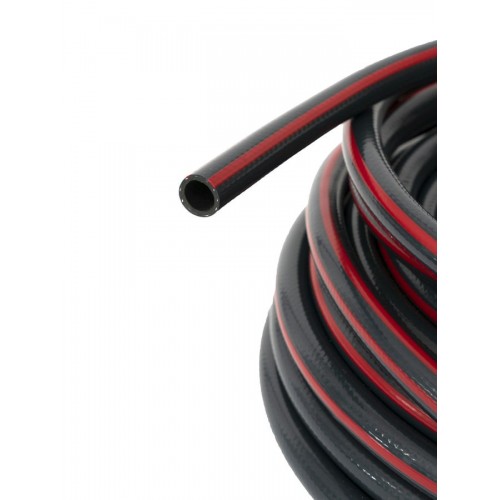 Шланг с диагональным армированием специальными нитями отличается стабильностью размеров, гибкостью и прочностью, а его высококачественная четырехслойная конструкция обеспечивает превосходную сопротивляемость скручиванию и заламыванию, создавая стабильное соединение и фиксацию между шлангом и различными коннекторами. Благодаря своей толщине стенок шланг отличается длительным сроком службы и выдерживает давление на разрыв до 24 бар. Верхний слой шланга устойчив к ультрафиолету и истиранию.