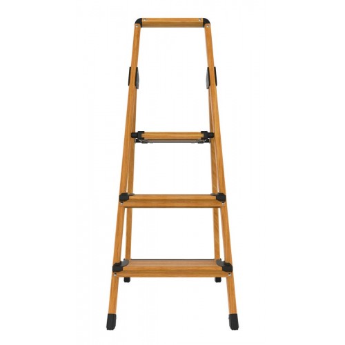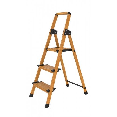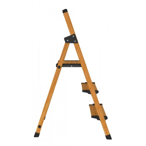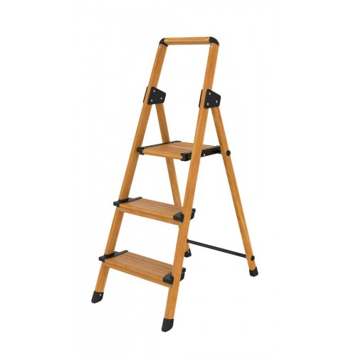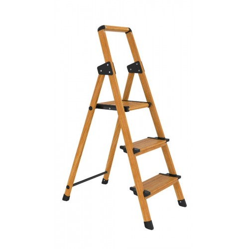 Раскладная стремянка из алюминиевого профиля с защитным покрытием и с тремя ступеньками, высотой 118 см, собственной массой 3,1 кг, позволяет выдерживать нагрузку до 150 кг. Глубина ступени 13 см. Цвет под дерево, покрытие - краска.