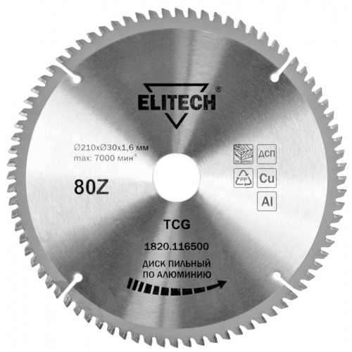 Elitech Диск пильный 210х30 80зуб алюминий 1820.116500