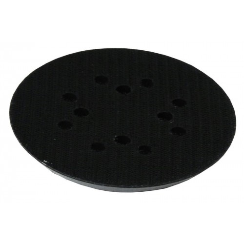 Подошва для эксцентриковой шлифмашины МШЭ 0412Э. Форма круглая. Диаметр 125 мм. Имеет 8 вентиляционных отверстий и 4 крепежных отверстия под витны. Крепиться 4 винтами. Основание пенополиуретан. Основание – липучка для шлифовальных кругов.
