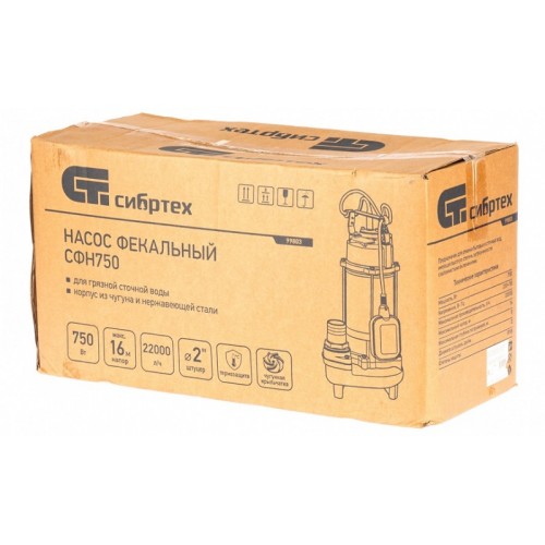 Фекальный насос СФН750, 750 Вт, напор 16 м, 22000 л/ч СИБРТЕХ 99803