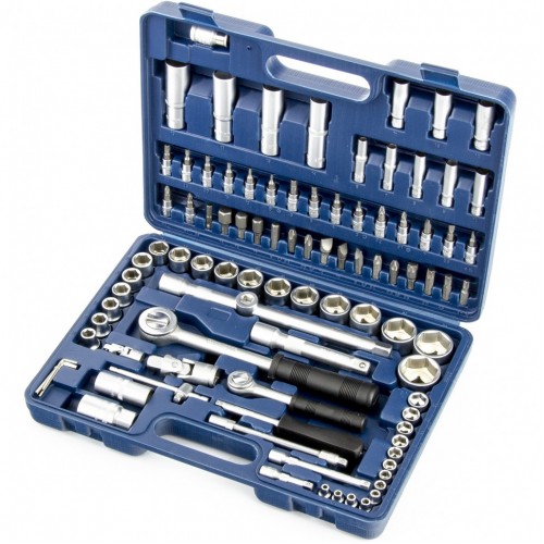 Разработан специально для автолюбителей, его вполне достаточно для ремонта машины в гараже. Может использоваться для выполнения несложных бытовых работ. Инструмент изготовлен из инструментальной стали, обеспечивающей ему исключительную прочность, и имеет антикоррозионное матовое покрытие. Трещоточный ключ оснащен специальным переключателем с насечкой, что позволяет удобно работать одной рукой. Набор упакован в кейс, изготовленный из прочного противоударного пластика.