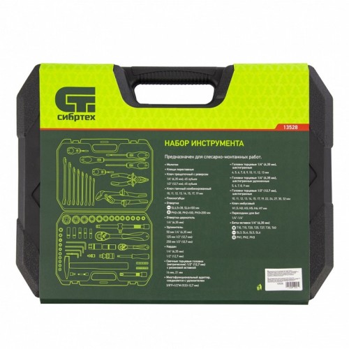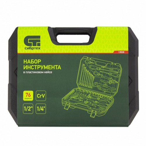Набор инструментов 76 предметов CrV, 1/2", 1/4" СИБРТЕХ 13528
