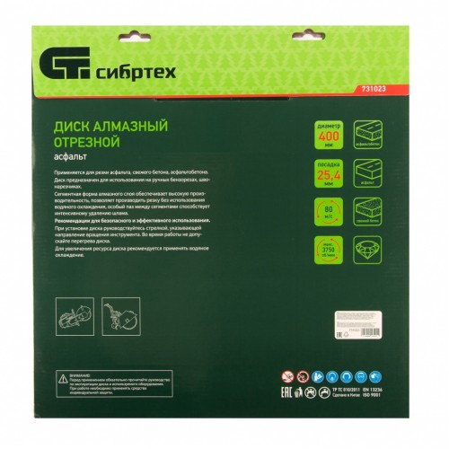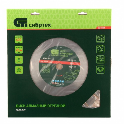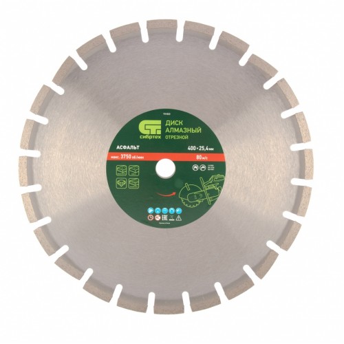 Диск алмазный 400 х 25,4 мм, "Асфальт", сухой/мокрый рез СИБРТЕХ 731023