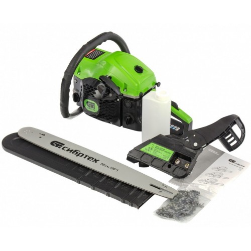 Бензиновая цепная пила Сибртех предназначена для распиловки древесины различных пород