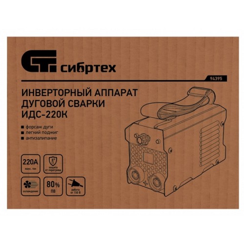 - Инверторный аппарат Сибртех ИДС-220К 94395 подходит для использования в бытовых и производственных условиях