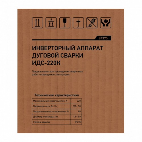 Инверторный аппарат дуговой сварки ИДС-220K, 220 А, ПВ 80%, диаметр электрода 1,6-5 мм СИБРТЕХ 94395