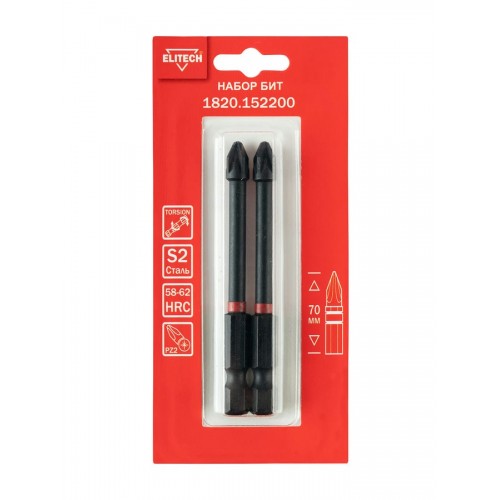 Elitech Биты ударные PZ2 70мм 2шт 1820.152200