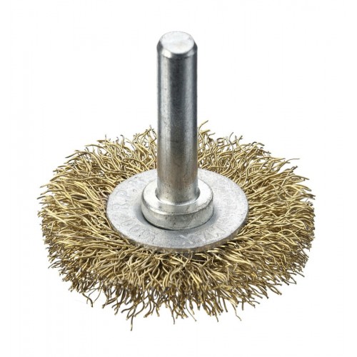 Щетка д\дрели, 40 мм, плоская со шпилькой, латунированная витая проволока 0,3 мм