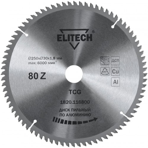 Elitech Диск пильный 250х30 80зуб алюминий 1820.116800