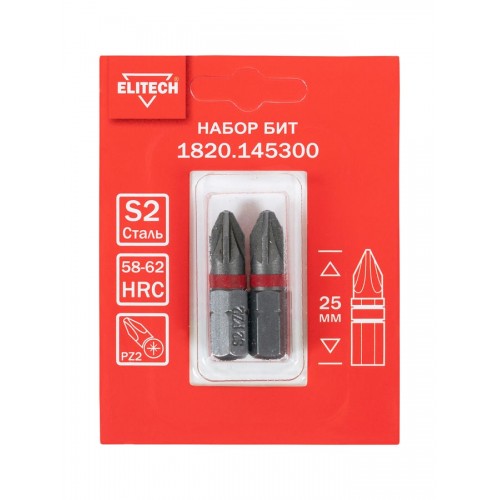 Elitech Биты PZ2 25мм 2шт 1820.145300