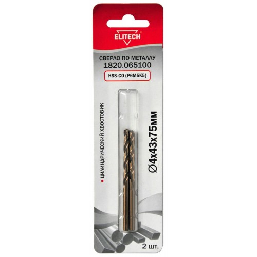 • Elitech Кобальтовое сверло 4.0х75 2шт 1820.065100