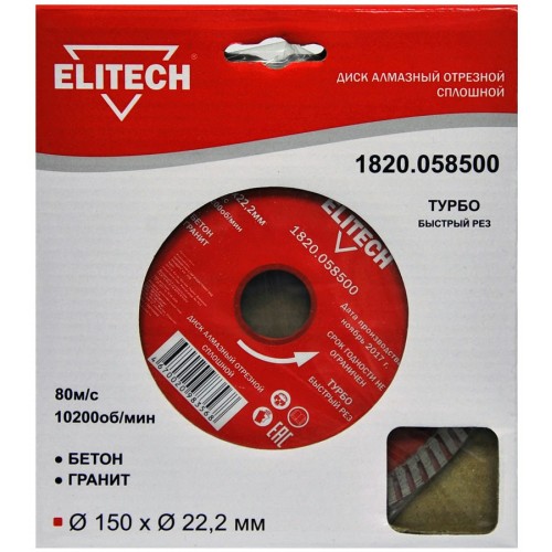 • Elitech Диск алмазный 150х22.2 турбо 1820.058500