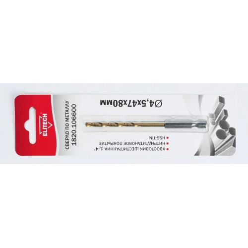 Elitech Сверло 4.5х80 HSS-G+TiN HEX1/4' 1820.106600