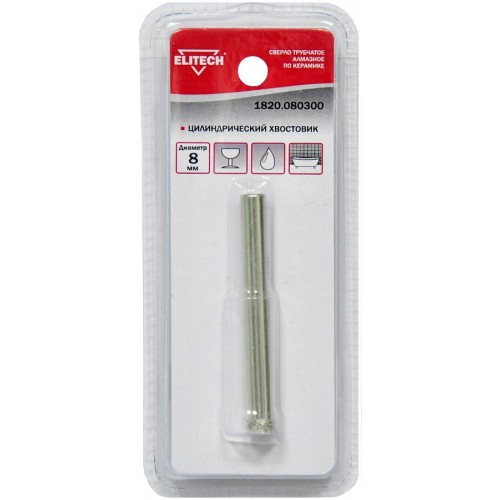 Сверло трубчатое алмазное по керамике, цилиндрический хвостовик, ф8мм