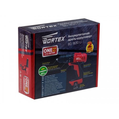Аккум. дрель-шуруповерт WORTEX BD 1830 Li в кор. (18.0 В, БЕЗ АККУМУЛЯТОРА И ЗУ, 2 скор., 40 Нм, шурупы до 10 мм)