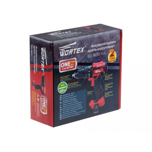 Аккум. дрель-шуруповерт WORTEX BD 1830-1 Li в кор. (18.0 В, БЕСЩЕТОЧНЫЙ ДВИГАТЕЛЬ, БЕЗ АККУМУЛЯТОРА И ЗУ, 2 скор., 60 Нм, шурупы до 11 мм)