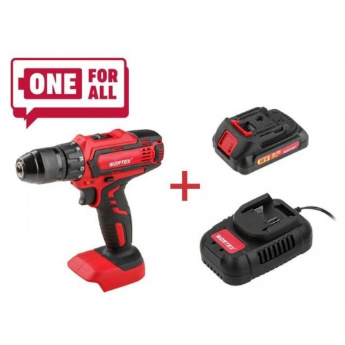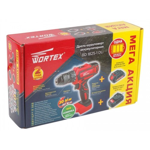 Аккум. дрель-шуруповерт WORTEX BD 1825-1 DLi в кор. ALL1 (18.0 В, 1 акк., 2.0 А/ч Li-Ion, 2 скор., 30 Нм, шурупы до 8 мм)