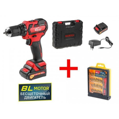 В акционный комплект входит: BLD12151DLi0029 Аккум. дрель-шуруповерт WORTEX BD 1215-1 DLi в чем. - 1 шт.; WSCS0028U13314 Набор бит 33 пр. Wortex - 1 шт.;