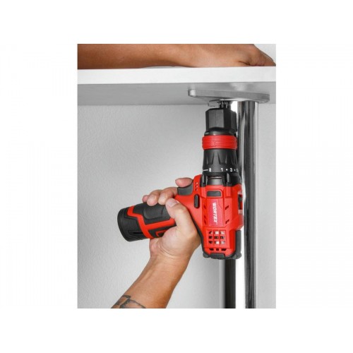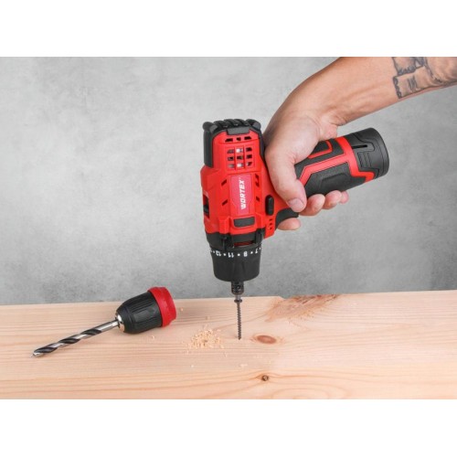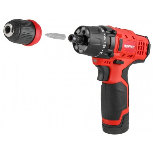 Компактный шуруповерт WORTEX оснащен производительным двигателем и надежным редуктором, что позволяет ему развивать усилие в 30 Н*м. Конструкция патрона позволяет использовать сменные насадки для работы в труднодоступных местах. Кроме того, можно работать и без установленного патрона, так в инструменте присутствует механизм магнитной фиксации биты 1/4" в шпинделе. С помощью этой функции вы можете установить сверло в трехкулачковый патрон, а биту в шестигранное крепление внутри, как итог вы сможете быстро выполнять работы по сверлению и закручиванию одним инструментом. Быстрозажимной патрон 10 мм позволит осуществить быструю и удобную замену оснастки. В комплект поставки входят 2 сменные насадки для работы в труднодоступных местах. Чувствительная регулировка крутящего момента поможет выбрать необходимое усилие для разных работ. Инструмент оснащен надежным 2-скоростным редуктором. 1-ая скорость - для работы с крепежом, 2-ая - для сверления. Для повышения комфорта использования шуруповерт имеет яркую подсветку, реверс, индикатор уровня заряда аккумулятора, эргономичную обрезиненную рукоятку, удобный пластиковый кейс. Для непрерывной работы в комплект поставки входят 2 аккумулятора на 1,5 А*ч и компактное зарядное устройство.