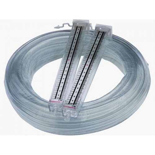 Гидроуровень работает по принципу соединяющихся сосудов. Присутствуют две измерительные колбы, изготовленные из пластмассы с обозначенными шкалами. Применяется для того чтобы определять взаимное расположение поверхностей элементов строительных конструкций, находящихся в горизонтальной плоскости. Используется при производстве стяжки пола, установке фундаментальных блоков, кладке кирпича, установке строительных контсрукций.