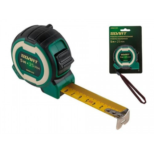 Рулетка 5м/25мм двухкомпон. корп. ВОЛАТ (быт.) (1 мех. фиксации, ABS+TPR, УФ кольцо на корпусе рулетки)