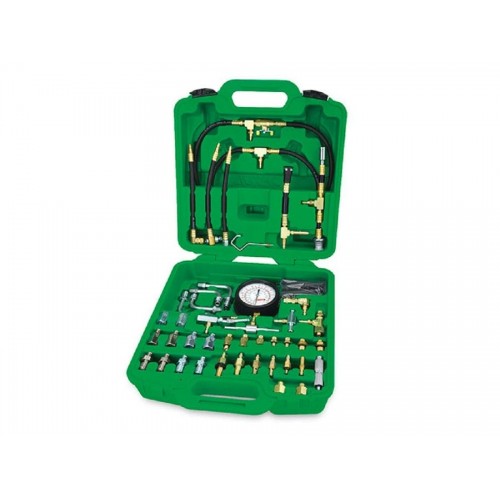 Набор для тестирования инжекторов TOPTUL JGAI8101 Профессиональный универсальный комплект предназначен для выявления и диагностики низкого давления топлива, неисправного регулятора давления топлива, утечки при впрыске, утечка топлива и засорение топливных фильтров. Большой ударопрочный манометр датчика давления топлива с двумя шкалами (0-120 фунтов на квадратный дюйм или 0-8 Бар) Измерительная головка со встроенным клапаном сброса давления. Полный набор адаптеров и фитингов для большинства систем впрыска топлива американских, японских, европейских автомобилей, включая Многопортовый впрыска топлива (MFI системы), системы GM TBI и системы Bosch CIS. Применение: BMW, VW, Audi, Volvo, Saab, Ford, Chrysler, Fiat, Honda, Hyundai, Isuzu, Mazda, Porsche, GM, Mercedes-Benz, Peugeot, Suzuki, Toyota, Mitsubishi, Jeep и т.д. Комплектация TOPTUL JGAI8101: быстросъемные переходники, фитинги, шланги, адаптеры, трубы, пробки, уплотнители, зажимы, топливный шланг, разветвитель.