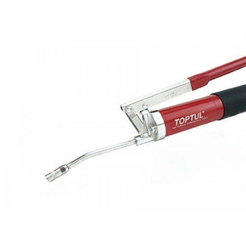 Шприц-масленка с JJAA1402 TOPTUL имеет стальной корпус c антикоррозионным покрытием, оборудован оцинкованным стальным стержнем с поршнем. Жесткий наконечник имеет длину 6 (150мм). Масленка имеет рычажно-плунжерный механизм, ручка и часть корпуса обрезиненные, для предотвращения скольжения рук. Шприц-масленка имеет объем 400 мл. Подходит для большинства туб для смазки. Можно заряжать смазку отдельно (без установки тубы). У шприца-масленки регулируемый ход (двухступенчатое сжатие). Применим при ремонте моторной и ходовой части автомобиля и при обслуживании других деталей машин и агрегатов в точках трения. Общая длина шприца составляет 530 мм.