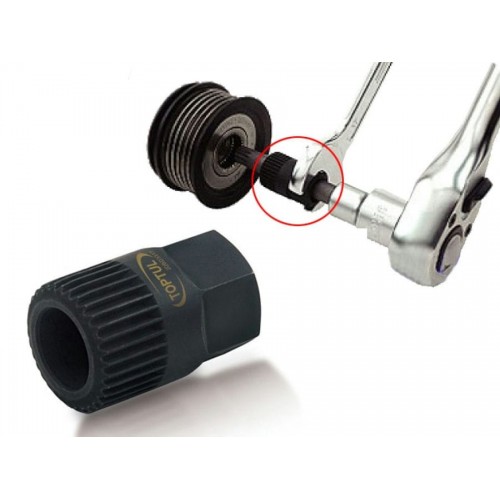 Съемник шкива генератора TOPTUL имеет специальную конструкцию для остановки шкива и снятия центрального крепежного болта. Применяется с 17 мм гаечным ключем и битой M10. Подходит для Audi, VW, Volvo и других автомобилей. Рекомендуется для профессионального использования. Тип съемника Съемник шкивов: есть