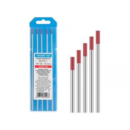 Электрод вольфрамовый красный WT-20, Ф 3,2 мм (набор 5 шт) SOLARIS