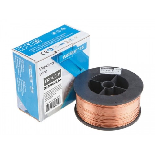 Проволока сварочная омедненная ER 70S-6 ф0,8мм (катушка D100 1 кг) SOLARIS (аналог СВ08Г2С)