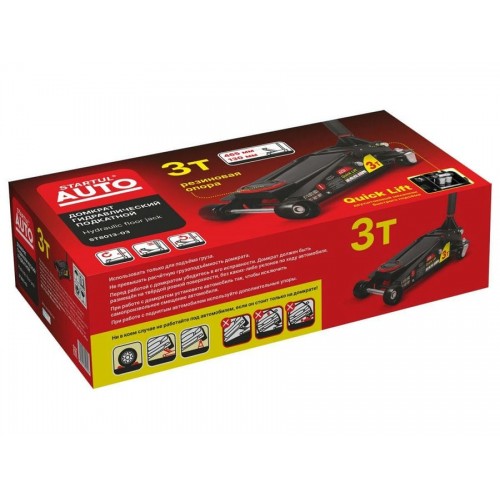 резиновая опора (для защиты груза и самого домкрата от механических повреждений), предохранительный клапан (для защиты от перегрузки), лоток для болтов и гаек, прорезиненная рукоять |