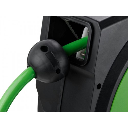■ Шланг предназначен для соединения воздухонагнетательного оборудования с различным пневматическим инструментом. Оборудован катушкой закрытого типа. Имеет поворотный 180° кронштейн для крепления к стене. Катушка оснащена системой автоматической смотки. На шланге имеется передвижной ограничитель.