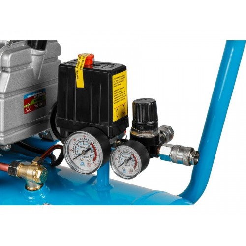 ■ Тепловая защита электродвигателя ■ 2 быстросъемных выхода ■ Манометр давления в ресивере ■ Манометр давления на выходе ■ Регулятор давления ■ Контрольный глазок для проверки уровня масла ■ Воздушный фильтр с поролоновым фильтроэлементом ■ Ручка для транспортировкиВНИМАНИЕ! Уровень масла должно быть чуть выше кромки красной точки контрольного глазка! Компрессор поставляется с компрессорным маслом необходимого объема для стартового запуска компрессора. Масло может быть заправлено в картер компрессорной головы компрессора, либо перелито в отдельную герметичную емкость для целей транспортировки во избежание утечки из картера в зависимости от условий транспортировки изделия. В картере могут находиться остатки масла. Это связано с тем, что 100% устройств запускается на производстве после сборки для проверки на работоспособность.