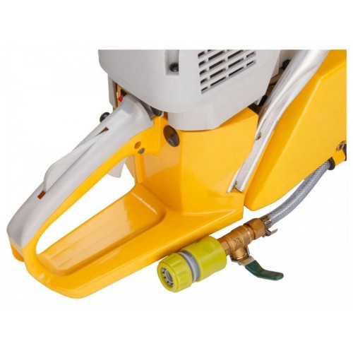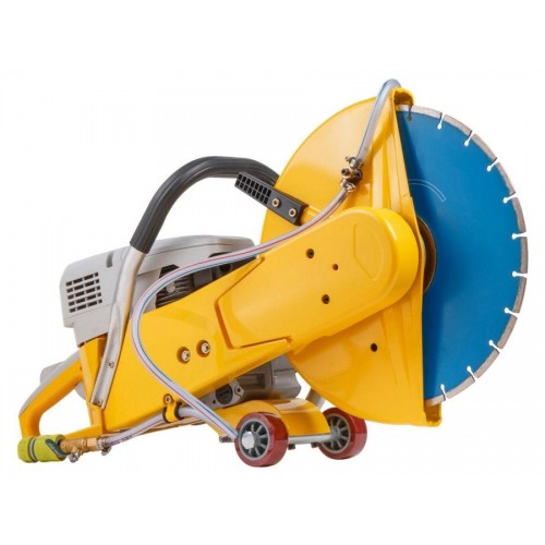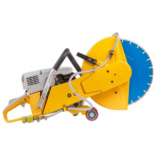 Мобильный бензорез с мощным двигателем в 4 кВт. Установленные колесики облегчают передвижение инструмента и нивелируют его вес. Предусмотрено водяное охлаждение диска. Возможно использование дисков со следующими характеристиками: Внешний диаметр: до 355 мм; Внутренний диаметр: 25,4 мм; Допустимая скорость вращения: 90 мс; Допустимое количество оборотов холостого хода: 4980 обмин; Гарантийный срок - 12 месяцев.