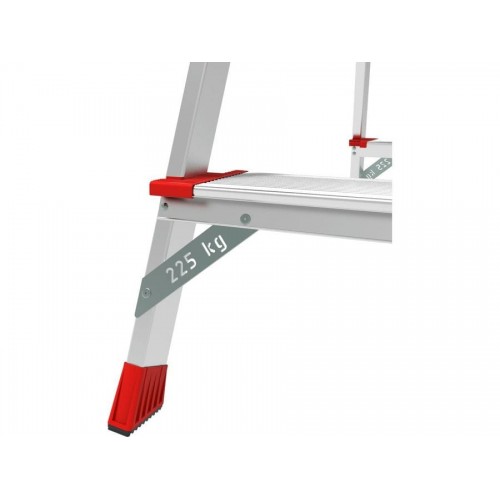 Ориентация ступеней на обе стороны позволяет работать, не переставляя стремянку и тем самым экономя время Максимальная прочность и надёжность при небольшом весе изделия Легко устанавливается и обеспечивает высокий уровень комфорта Стойки и ступени из экструдированных алюминиевых профилей увеличенного сечения Ступени глубиной 130 мм увеличенной толщины Рифлёная поверхность ступеней для безопасного подъёма и спуска Увеличенная площадка 260?350 мм Прочное крепление ступеней к боковинам шестью заклёпками для более высокой устойчивости конструкции Прочные страховочные ремни Опорные наконечники из прочного пластика для устойчивого положения Компактность при хранении и транспортировке Практичность и внимание к каждой детали гарантируют безопасность работы на любой высоте