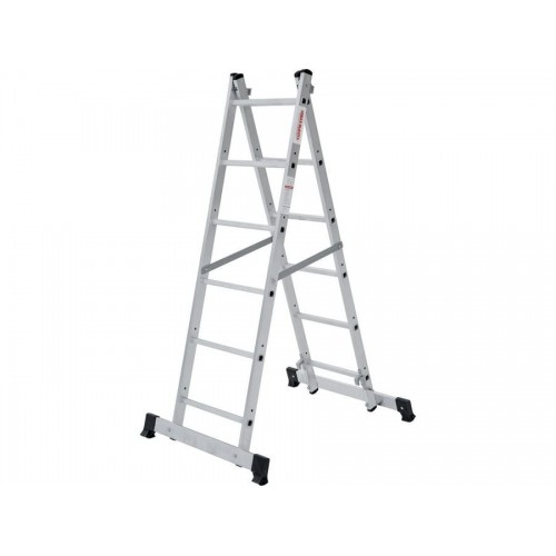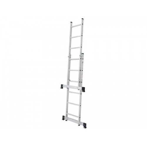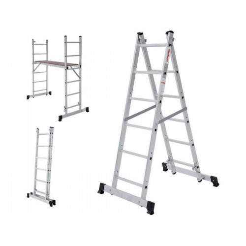 Легкая и прочная лестница-подмости 3 в 1: приставная лестница, стремянка, строительные подмости. Для бытового использования при проведении внутренних и наружных работ Высокая прочность и надёжность при небольшом весе изделия Возможность установки на лестничных маршах Легко устанавливается и обеспечивает высокий уровень комфорта Стойки и перекладины из экструдированного алюминиевого профиля Помост 0,341,47 м из влагостойкой фанеры с возможностью установки на разных уровнях Высота площадки 0,8 м Многократкая развальцовка в соединении ступеней со стойками обеспечивает высокую прочность и долговечность Рифлёная поверхность ступеней для безопасного подъёма и спуска Шаг ступеней 260 мм Алюминиевые направляющие кронштейны надёжно удерживают выдвижную секцию во всех рабочих положениях Зацепы с автоматическим фиксатором Широкие траверсы для максимальной устойчивости Опорные наконечники из прочного пластика для устойчивого положения Компактность при хранении и транспортировке Практичность и внимание к каждой детали гарантируют безопасность работы на любой высоте Максимальная нагрузка 150 кг.