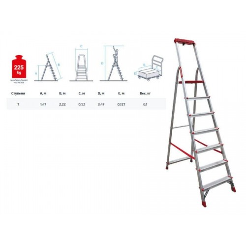 Лестница-стремянка алюм. проф. 147 см 7 ступ. 6,1кг NV300 Новая Высота (с лотком-органайзером, макс. нагрузка 225кг)