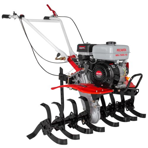 Сельскохозяйственная машина МБ-7000-10 Ресанта предназначена для обработки почвы: рыхления, боронования, выравнивания, прополки и других работ на личных приусадебных, огородных и садовых участках