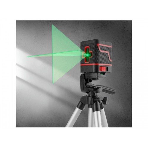 Компактный кросс-линейный нивелир для простых задач по построению плоскостей, отличается зеленым диодом, позволяющим работать в условиях высокой освещенности. Оснащен функцией автоматической настройки имеет прорезиненые боковые грани корпуса, что выполняет противоударную функцию. Есть возможность фиксации лучей. Поставляется в комплекте со штативом 65 см. Тип лазера: 635-670 нм класс 2 1 мВт Функция самонивелирования: есть; Лазерный крест: есть; Цвет луча: зеленый; Точность: - 0,4 ммм; Рабочий диапазон: 15 м; Диапазон самонивелирования: - 4; Угол развертки луча: 110 гр.; Корпус: IP54; Тип питания: элемент питания: 21,5 В тип АА; Резьба: 14; Штатив: есть; Время нивелирования: 3 с; Диапазон рабочих температур: -10С до 50С; Масса: 280 г; Упаковка: картонная коробка, тканевая сумка Гарантийный срок - 2 года.
