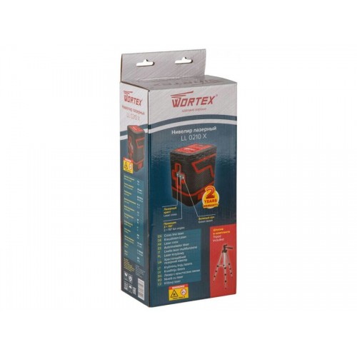 Нивелир лазерный Wortex LL 0210 X со штативом в кор. 2х110°, до 15 м, +/- 0.3 мм/м, зеленый (резьба 1/4", штатив 65 см в комплекте)