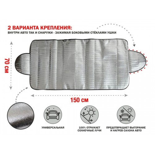 В теплый сезон многие водители сталкиваются с проблемой перегрева салона автомобиля, особенно при продолжительной парковке под ярким солнцем. Воздействие солнечных лучей не только повышает температуру в салоне, но также негативно влияет на его внутренние элементы. Решение этой проблемы может быть удивительно простым с использованием нашей шторки с алюминиевой фольгой! Не только защищая салон от вредного ультрафиолета, наша шторка для лобового стекла предотвращает нагревание салона и предотвращает выцветание приборной панели и кожи салона, благодаря блокировке прямых солнечных лучей. Шторка надежно отражает солнечные лучи, обеспечивая долговечную защиту материалов салона от воздействия ультрафиолета. Выполненный из высококачественной алюминиевой фольги, наш защитный экран эффективен и легок в использовании. Ушки по бокам обеспечивают легкость установки, а также позволяют зафиксировать шторку как снаружи, так и внутри автомобиля, предотвращая нагрев салона. Эта автомобильная шторка идеально подходит и для некоторых грузовых автомобилей, обеспечивая не только стильную, но и функциональную защиту вашего транспортного средства.