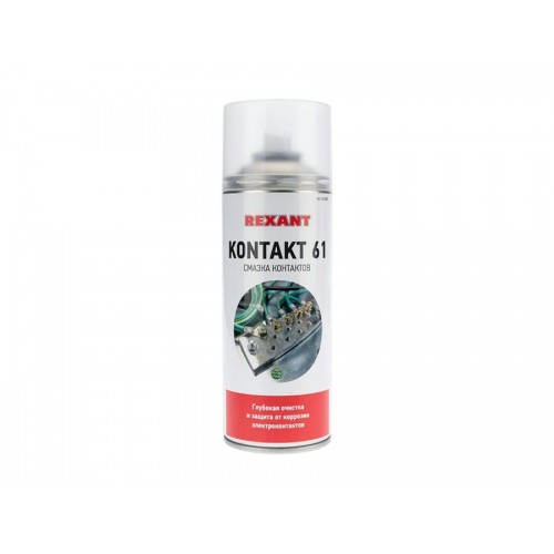 KONTAKT 61 REXANT - средство для очистки и защиты контактов,защищает от коррозии, гарантирует хороший контакт электрических элементов и движущихся электромеханических частей.Данное средство получило широкое распространение в таких областях как точное машиностроение, производство часов, изготовление инструментов, офисная техника и многое другое. Стоит отметить, что KONTAKT 61 является нейтральным продуктом, который предотвращает появления токов утечки, также стоит выделить, что трение между контактными поверхностями значительно уменьшается, а их рабочий ресурс увеличивается. Рабочие температуры: -40 - 250 C Диэлектрическая проницаемость: 2,2-2,4 ? Объем баллона: 520 мл Объем содержимого: 400 мл Срок годности: 18 месяцев