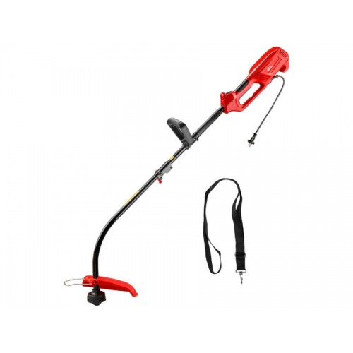 Электрический триммер предназначен для использования на приусадебных участках небольшой и средней площади. Инструмент оснащен мощным двигателем, эргономичной прорезиненной дополнительной рукояткой, которая может устанавливаться в любом удобном положении и также разборной штангой. Специальный кожух защищает оператора от повреждений и летящей травы. Изогнутая штанга обеспечивает удобную работу в труднодоступных местах.. В комплект входит наплечный ремень, который способствует меньшей утомляемости при работе, и косильная головка.. Гарантийный срок - 2 года.