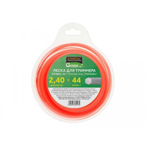 леска триммерная является режущим элементом и заправляется в триммерную головку; яркий цвет лески хорошо виден в любых погодных условиях, в плотном покрове травы и в условиях сниженной освещённости; с помощью острых углов, которые присутствуют в сечении, удается организовать более эффективный срез растительности |