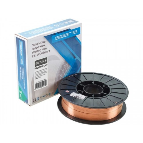 Проволока сварочная омедненная ER 70S-6 ф0,6мм (катушка D200 5 кг) SOLARIS (аналог СВ08Г2С)