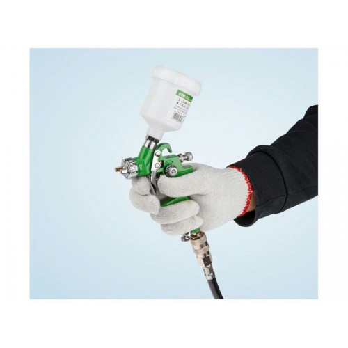 ■ верхний пластиковый бак 110 мл ■ латунная голова распылителя с покрытием ■ регулировка подачи материала ■ регулировка формы факела ■ регулировка количества воздуха ■ сопло 1.0 мм ■ легкий вес ■ быстросъемное соединение в комплектеКомпактный и легкий краскораспылитель типа HVLP для нанесения материалов на небольшие поверхности. Достоинства HVLP (High Volume Low Pressure - высокий объем, низкое давление): - высокая экономия материалов. - практически отсутствие опыла. - нет завихрений - нет мусора.