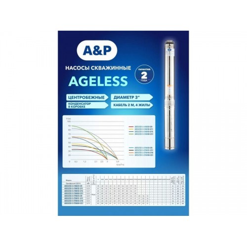 Насос скважинный центробежный AGELESS-3-2100/60-2/21 A&P (550 Вт, 2,7 м3/ч, 89м, 3" / 7,62 см)