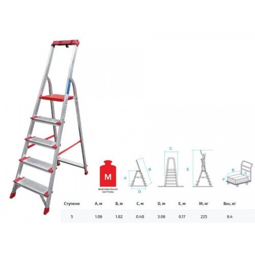 Вместительный лоток-органайзер для инструментов и материалов Максимальная прочность и надёжность при небольшом весе изделия Легко устанавливается и обеспечивает высокий уровень комфорта Стойки и ступени из экструдированных алюминиевых профилей увеличенного сечения Ступени глубиной 130 мм Рифлёная поверхность ступеней для безопасного подъёма и спуска Прочное крепление ступеней к боковинам заклёпками для более высокой устойчивости конструкции Рифлёная безопасная площадка из оцинкованной стали с порошковой покраской Дуга безопасности 600 мм Прочные страховочные ремни Опорные наконечники из прочного пластика для устойчивого положения Компактность при хранении и транспортировке Практичность и внимание к каждой детали гарантируют безопасность работы на любой высоте